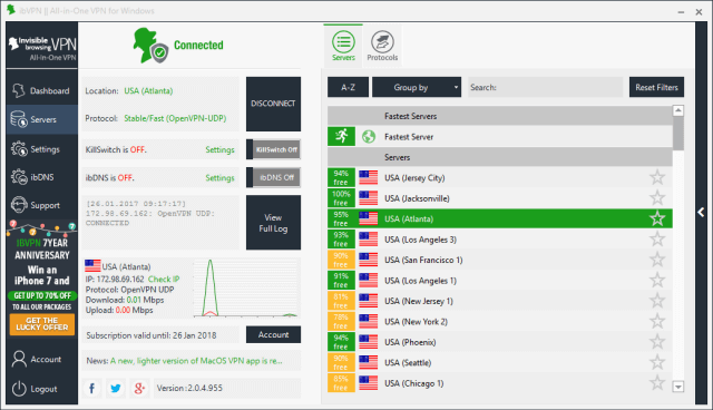 可以安全地在咖啡厅、机场或公园上网。可以匿名安全地浏览而无需跟踪。遍及多个国家/地区。